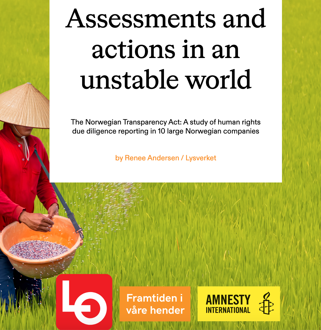 På oppdrag fra Amnesty, Framtiden i våre hender og LO, har Lysverket, med Renee Andersen i spissen, sett på rapportene til selskapene Kid, IKEA, Skuld, Gard, Yara, Elkem, Hydro, Equinor, Aker BP og Aker Solutions i landene Pakistan, Colombia, Kina, Vest Sahara og USA.